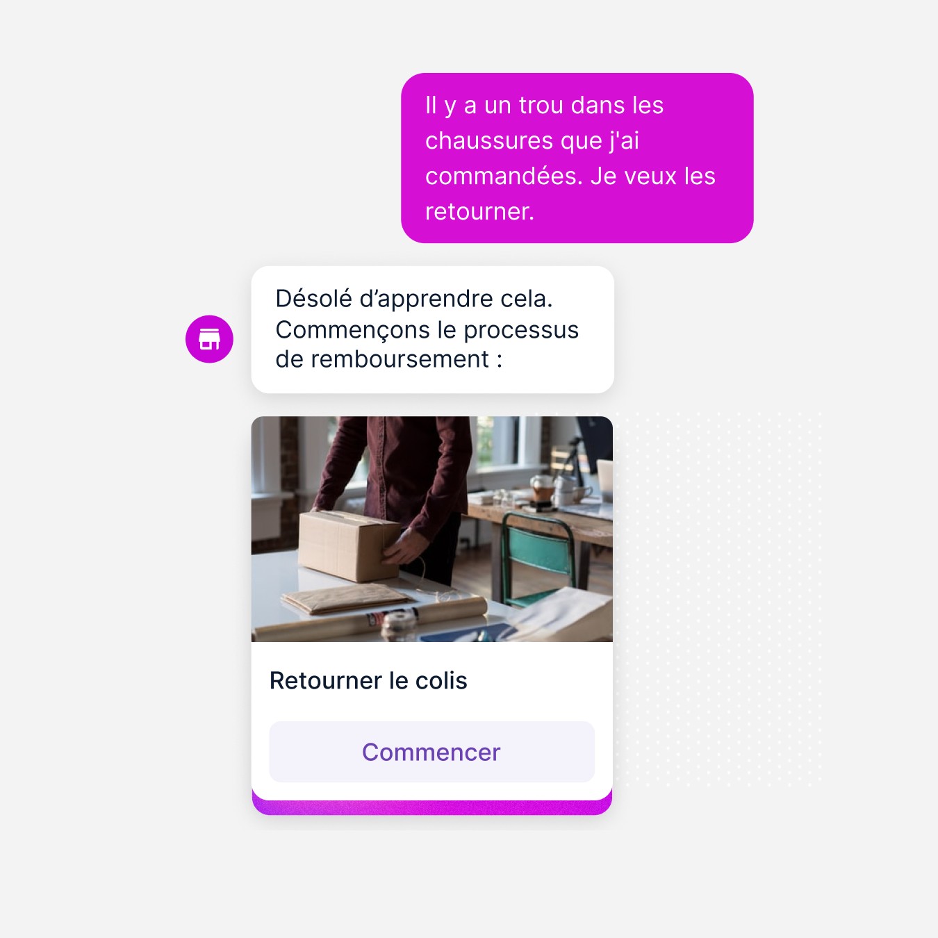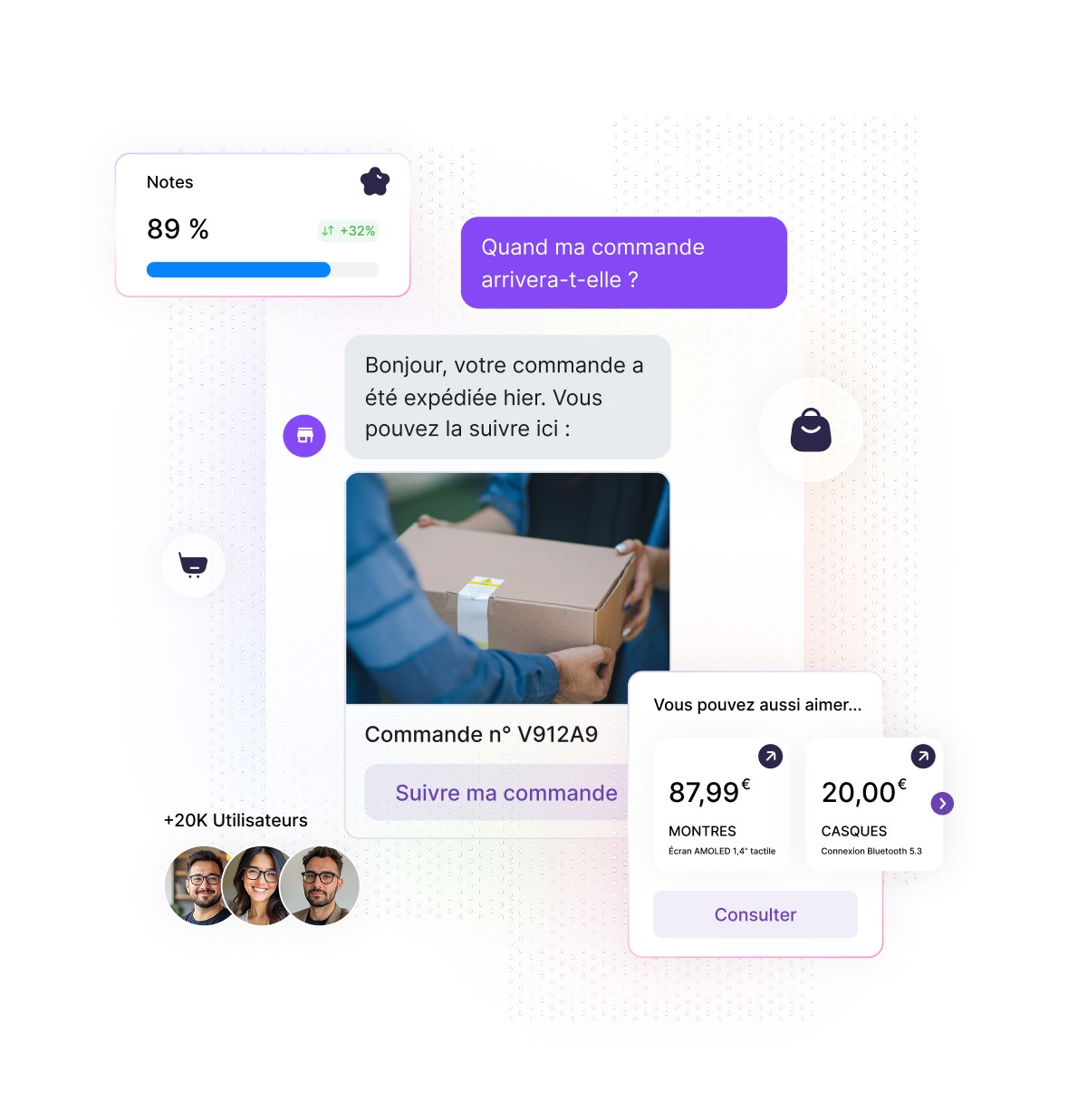 Unlike traditional customer support, our conversational artificial intelligence is available 24/7. The result: your customers can buy what they want, when they want, without waiting.
